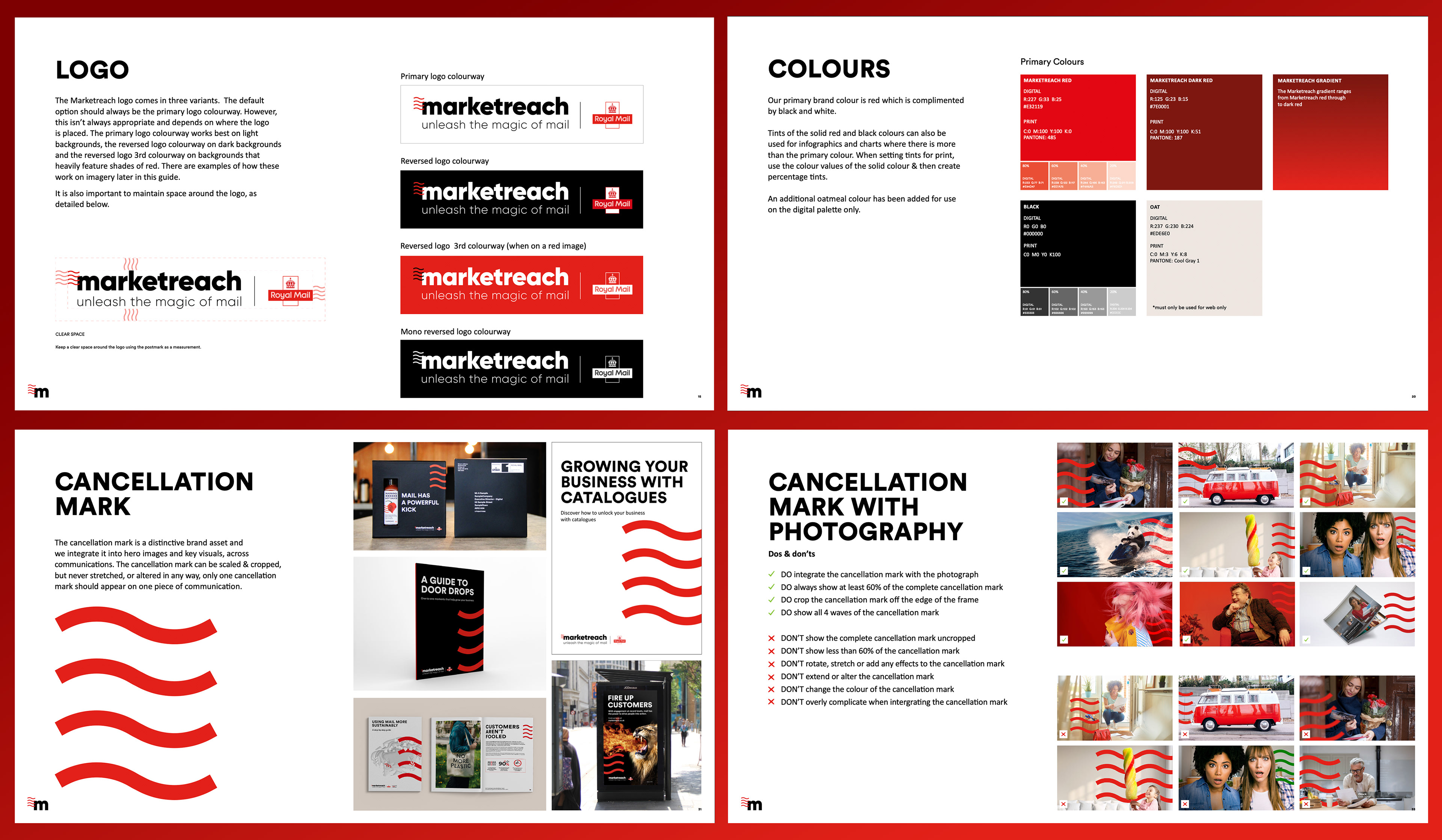 Due to the rise of digital media Marketreach had become a quite brand hiding behind Royal Mail. So we introduced a powerful, ownable graphic device taken from the 'cancellation mark' used on stamps and gave them back the lead character energy they deserved.